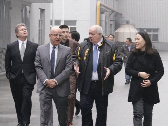 當天下午,在公司總經理助理周宏義的帶領下,H.B. Fuller一行人員參觀了我公司生產廠區。